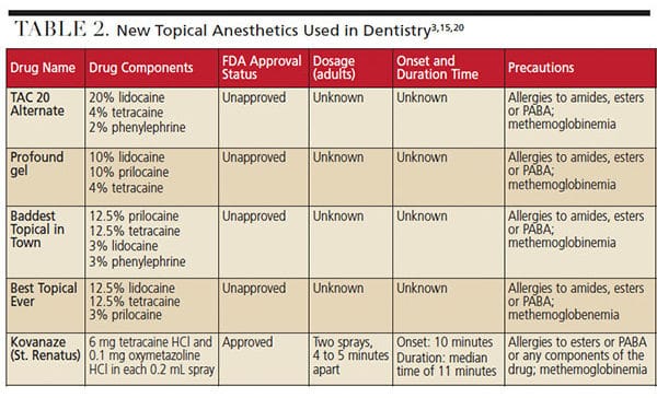 topical-anesthetics table-2 - Decisions in Dentistry